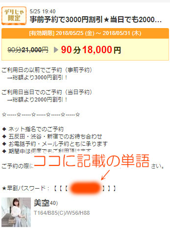 ※早割パスワードが不明でしたら、ココをクリックしてお電話にてご相談下さい。