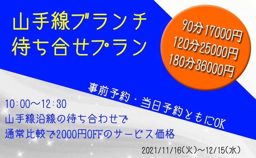 | ←スクロール→ | 通常コース料金 | 山手線ブランチ 待ち合せプラン |